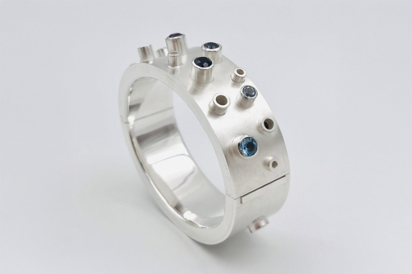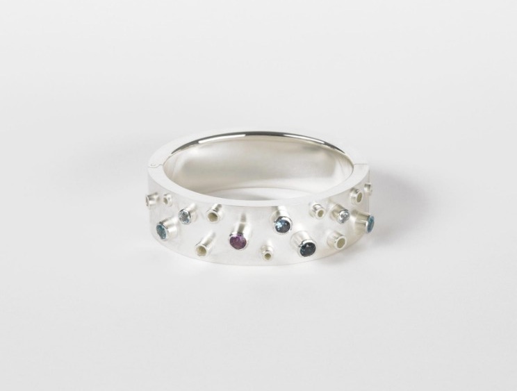 • Structure: The rhythmically placed settings (tubes) protrude from the surface like small suction cups, giving the bangle a lively appearance.