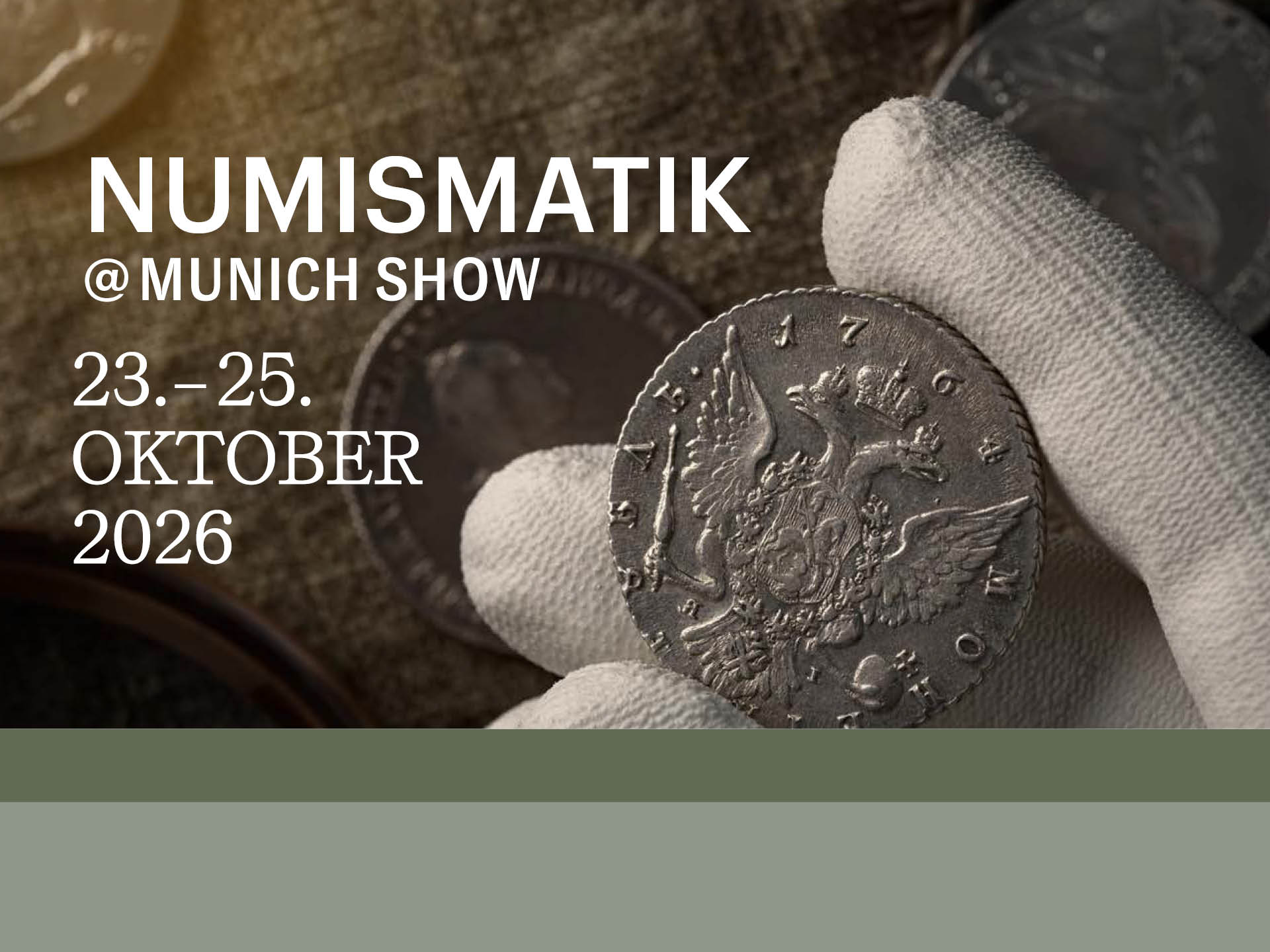Im Oktober wird die Munich Show zum lebendigen Treffpunkt der internationalen Sammlerszene. Sammler, Händler und Numismatik-Experten aus aller Welt kommen im Herzen Europas zusammen, um ihre Leidenschaft zu teilen, besondere Stücke zu entdecken und wertvolle Kontakte zu knüpfen. Die hervorragende Anbindung und moderne Infrastruktur schaffen dafür den idealen Rahmen. Ein vielseitiges Rahmenprogramm und hochkarätige Sonderausstellungen machen den Besuch zu einem besonderen Erlebnis. Hier wird Numismatik nicht nur präsentiert, sondern gelebt.