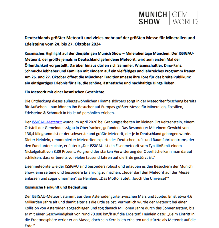PM Munich Show Meteorit ISSIGAU 27.09.2024